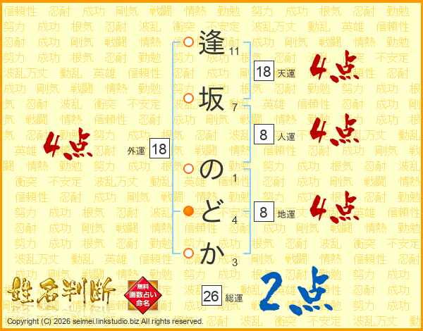 逢坂のどかさんの運勢 姓名判断 名前の画数から無料で